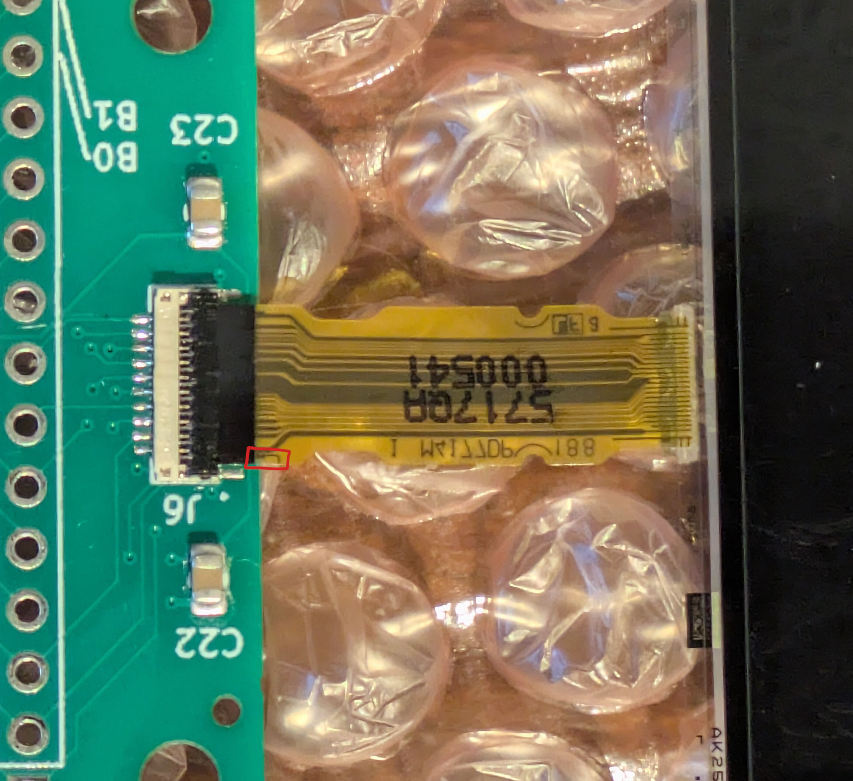 The picture below is from the mechanical drawing at the very last page of the datasheet, showing the connector up close. Also, interestingly, the image of the display on the DigiKey listing shows it with the bottom side up, which means that the display cable does not flip around like I thought it did. I don't have a picture in this post, but the back of the screen has a reflector (or maybe a polarizer?) attached to it with a shiny back. This shiny back is what the DigiKey listing shows.
