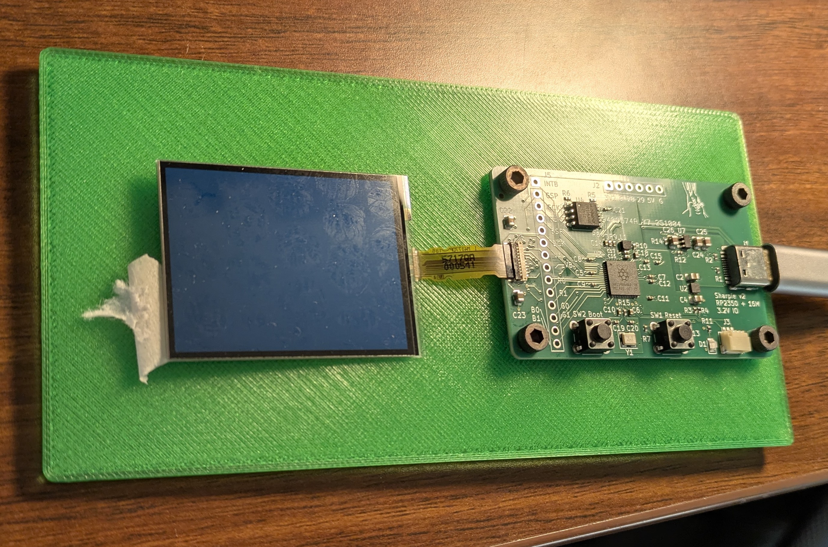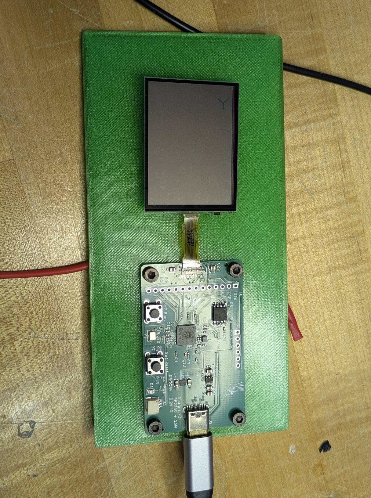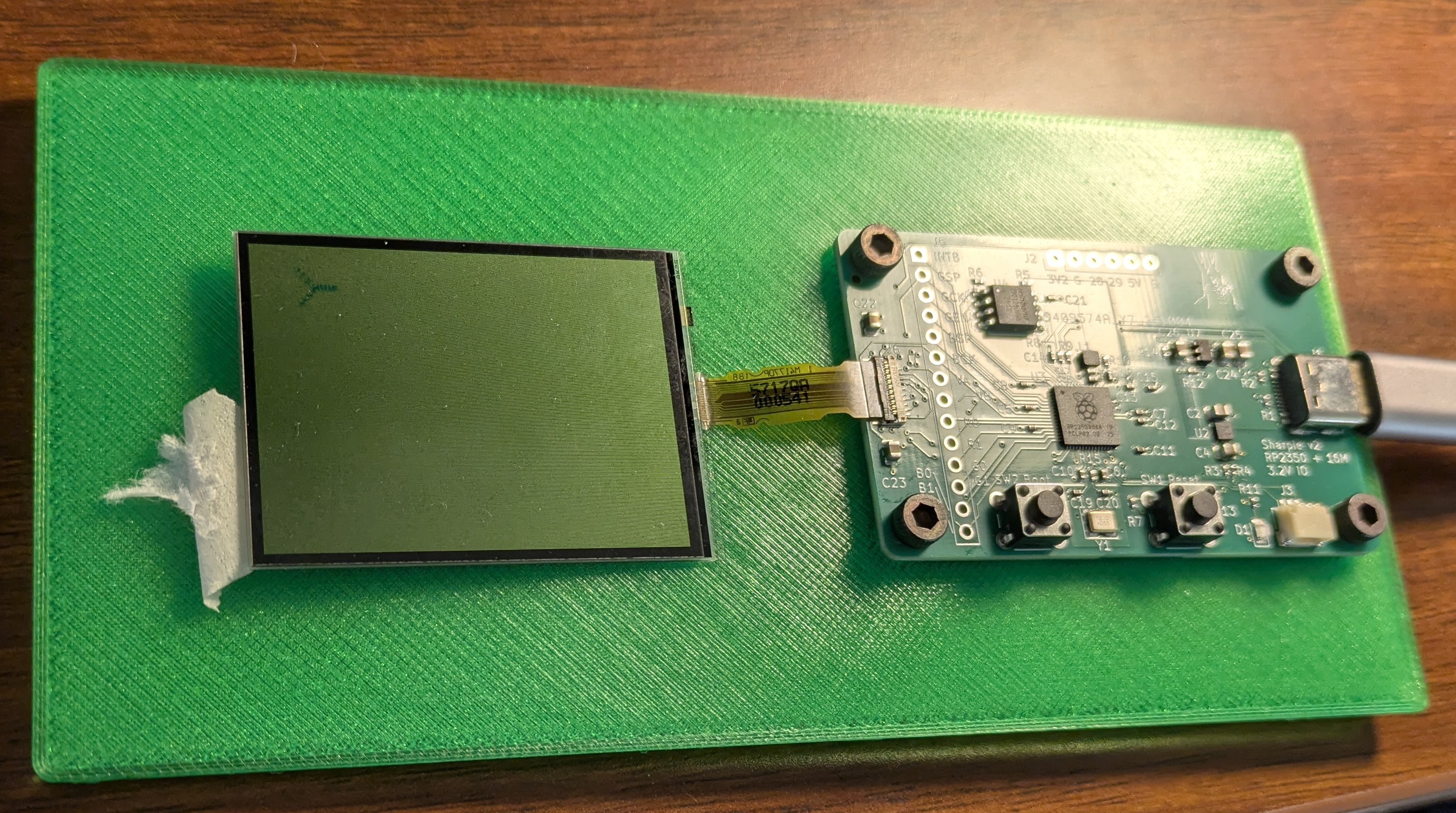 When the new boards arrived, I soldered on the connector, flashed the board, placed both board and display on the carrier, and...