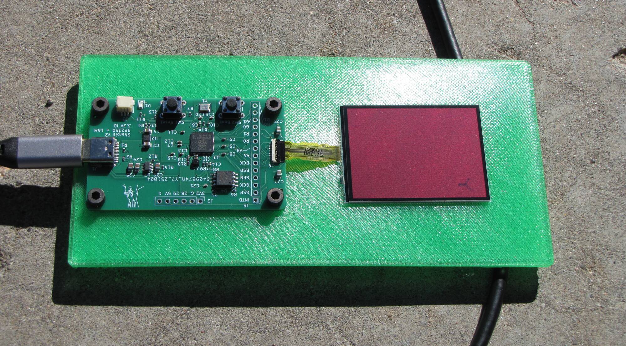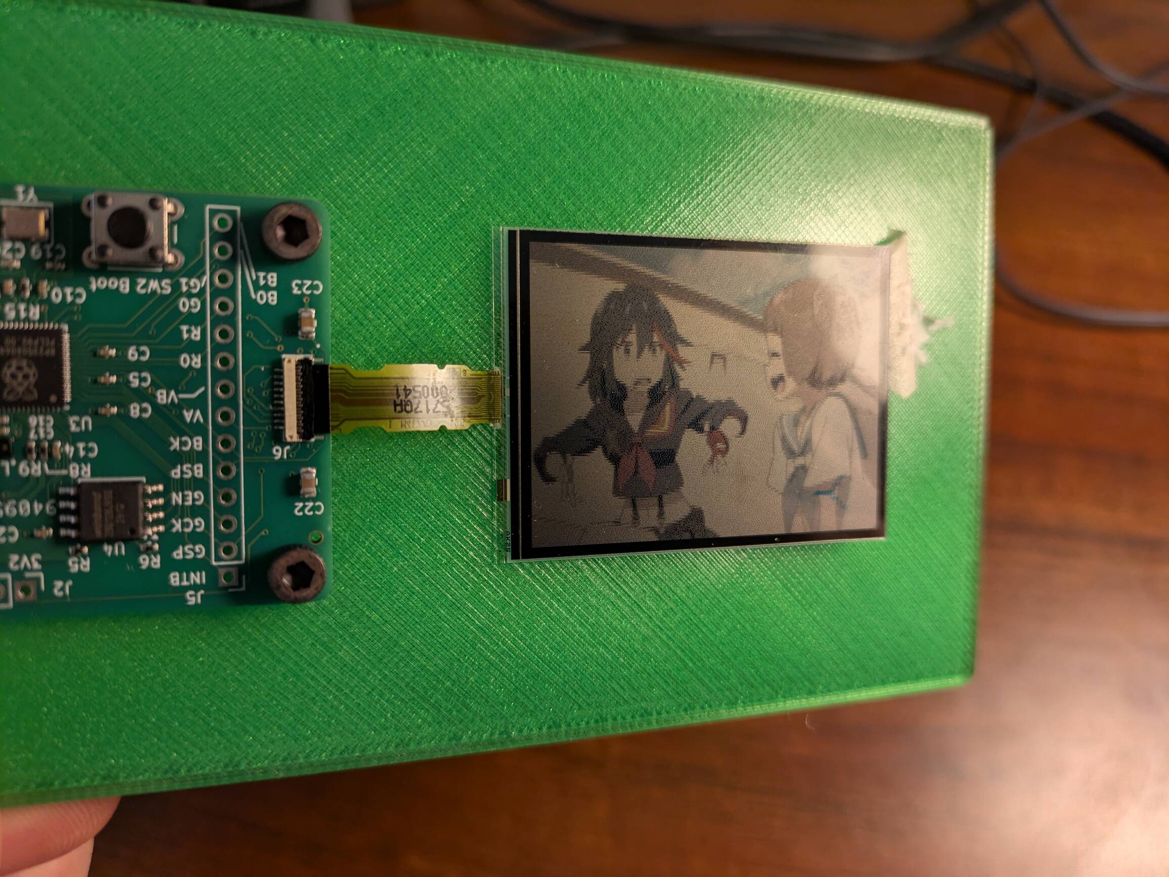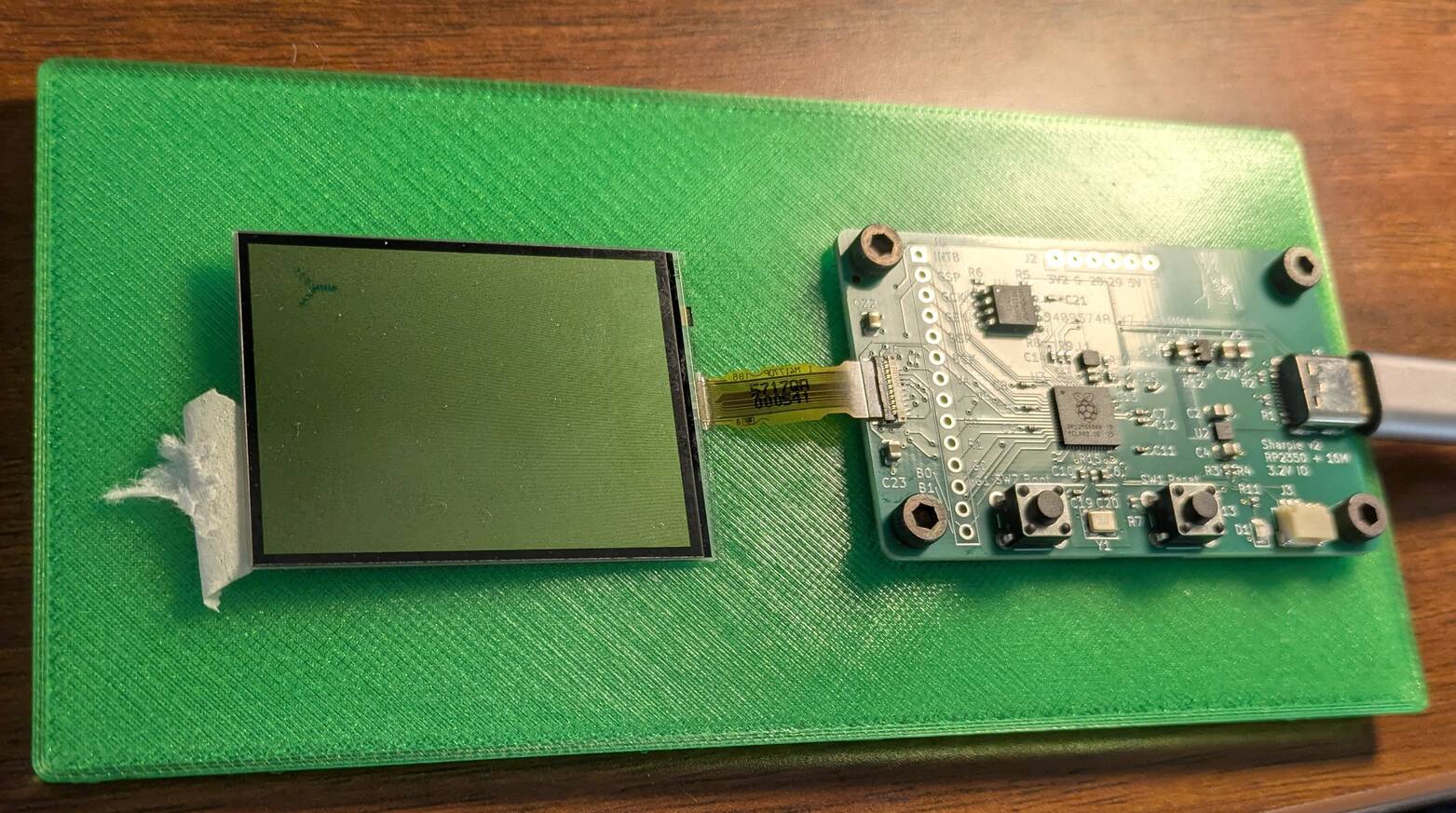 When the new boards arrived, I soldered on the connector, flashed the board, placed both board and display on the carrier, and...